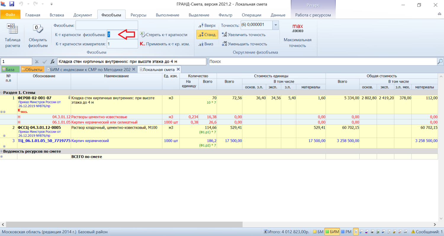 А почему бы вам не ввести в смету коэффициент кратности физобъёма – во всяком случае, эта функция в своё время была добавлена в программу именно для таких ситуаций: