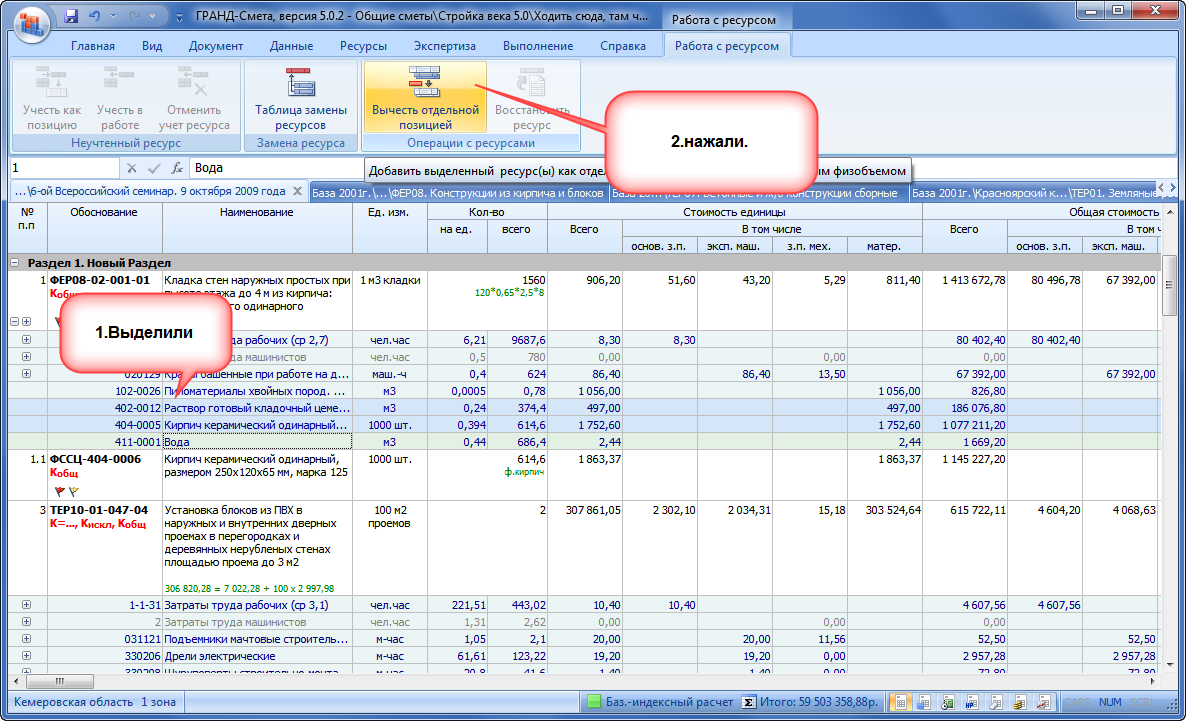 А как вывести "вычесть отдельной строкой"? Версия 4.0. Или как в этой версии И здесь же.. ЯНАО. ТЕРм08-03-571-02. В ресурсах по расценке есть 201-9408... А в СЦМ нет... Есть 9400 и сразу 9410...