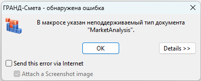 Всё равно кнопка макроса в форме КАЦ не активна Версия у меня 13.1.3.41560 (х64) А если в простой смете запустить макрос с таким типом документа выдаёт ошибку