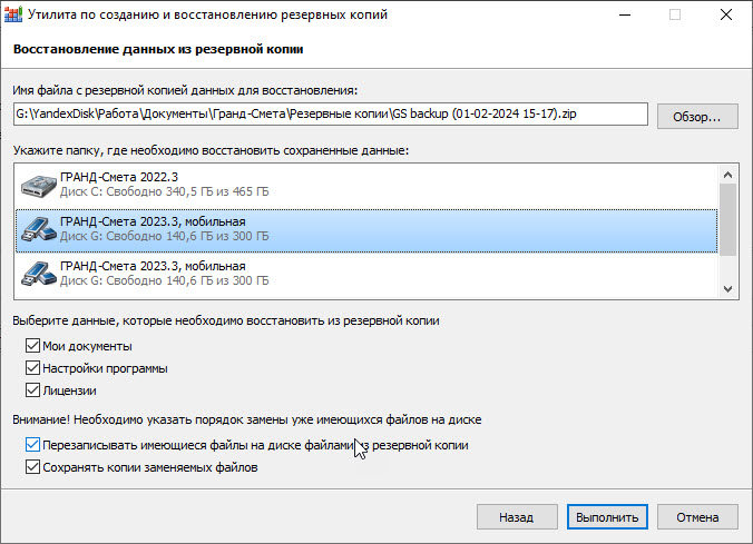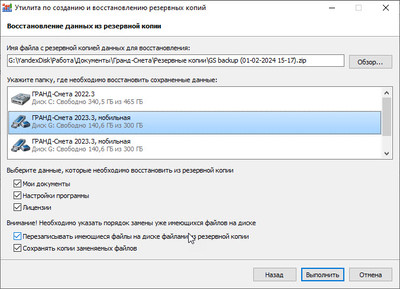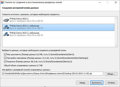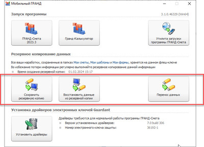 Создание и восстановление резервных копий для ГРАНД-Сметы