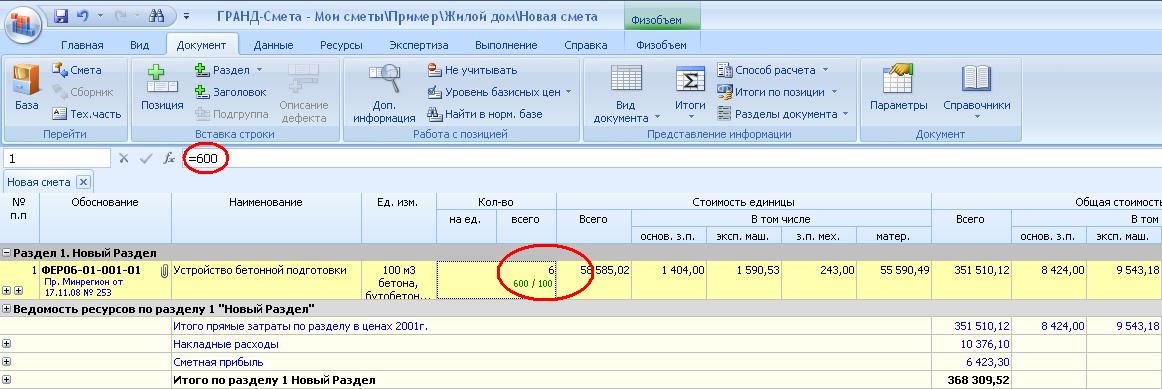 Опять двойной электронный перевод… Но если вы имели в виду пересчет заданного значения объема работ в зависимости от множителя в измерителе расценки – для этого надо ввести значение объема со знаком равенства "=" в начале. Эта опция работает начиная с версии 5.5: