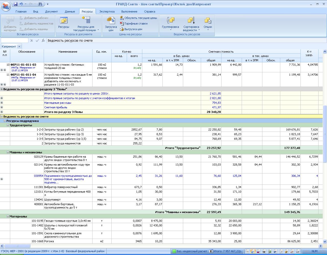nika8074, вот теперь понятно… Предлагаю вам работать с ведомостью ресурсов не в отдельном окне, а непосредственно в бланке сметы, в конце документа. При выбранном виде документа «Ресурсная смета» вы увидите там все те же самые колонки для работы с текущими ценами ресурсов: