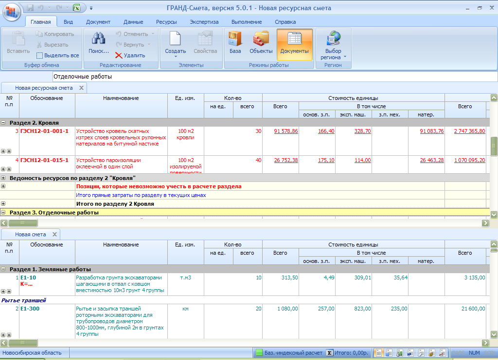 И ещё, очень громоздкий интерфейс получился у Гранд-Сметы 5, очень мало рабочего места при низких разрешениях (1024х768, 1280х800, 1440х900) Особенно это бросается в глаза в режиме "два окна". Сравните сами (разрешение 1024х768):
