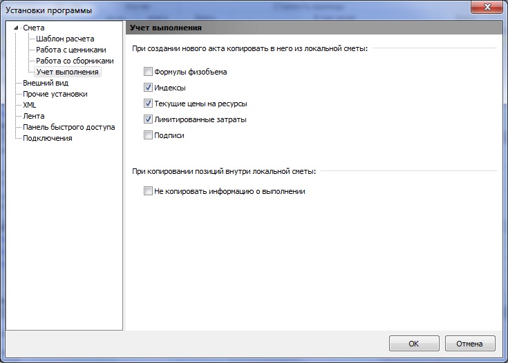luckymalika, если в установках программы не задана опция автоматического копирования индексов из сметы при создании нового акта, то вы просто получили акт без индексов. А в случае ресурсного расчёта – без текущих цен на ресурсы, по аналогичной причине. На будущее рекомендую включить вышеупомянутую опцию: А в уже созданный акт копируйте данные из сметы специальной кнопкой «Скопировать данные в акт» на вкладке «Выполнение». Либо воспользуйтесь возможностью задать в акте другие, чем в смете, индексы или текущие цены на ресурсы.