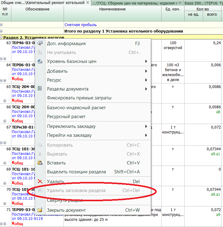 идёт строка "Итого по разделу 1. Установка котельного оборудования"?