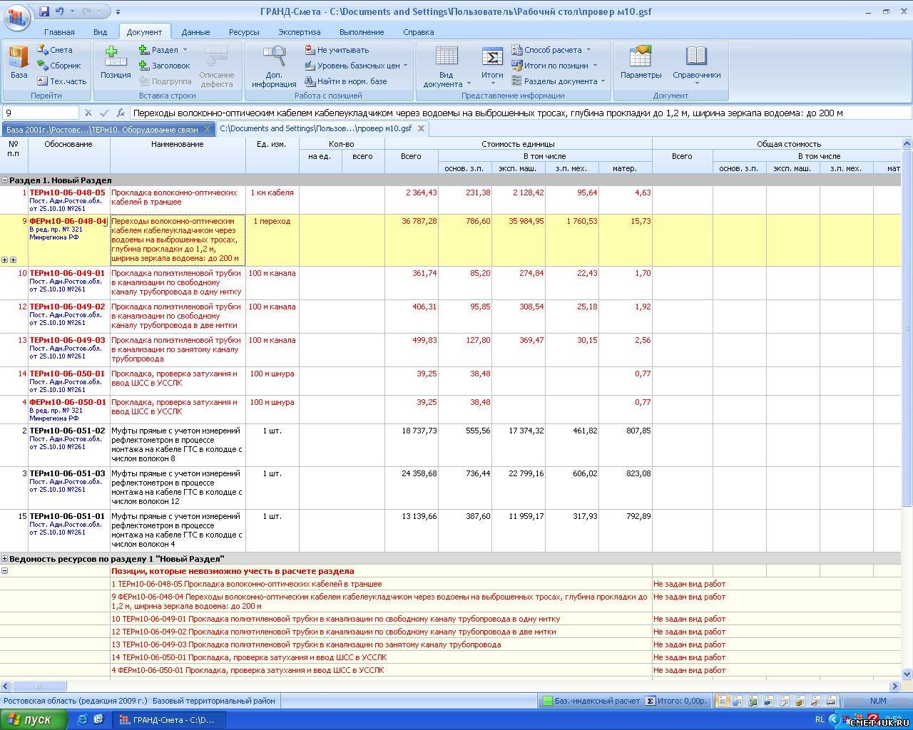 так это не ошибка! см. МДС81-33.2004 приложение 4 п.28.1 или п.28.3 для расценки м10-06-050-.. программа сама не может выбрать из 2х вариантов видов работ, т.е. пользователь сам должен решить межгород у него или городские сети.