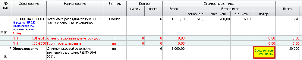 я раскрываю позицию: в строке "На единицу в текущих ценах" в столбце "стоимость единицы - материалы" должна изменить цену оборудования. но у меня ничего не выходит