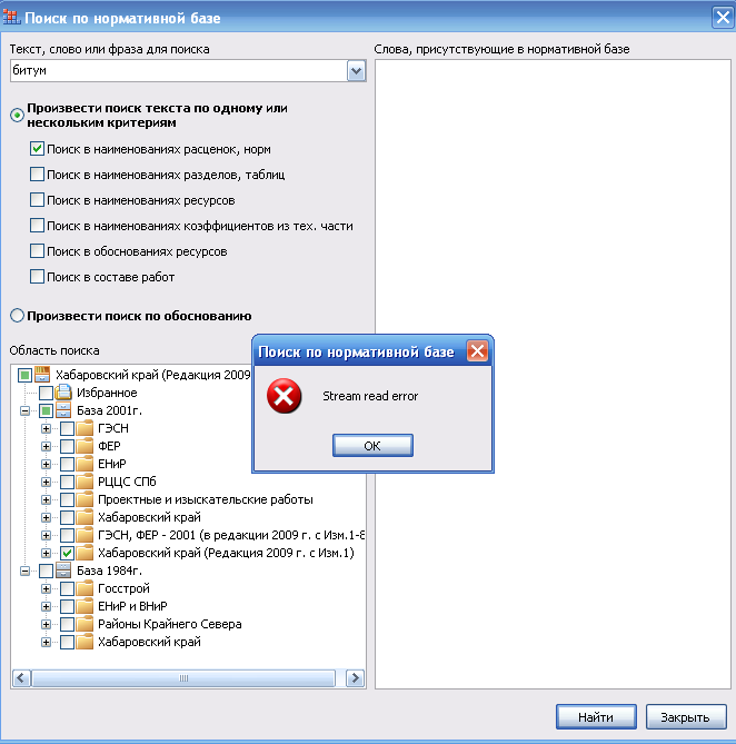 Я когда в параметрах в лимитированных затратах открываю файл с к-тами (импортирую из xml).. моя ошибка.. программа выдаёт ошибку и пытается отправить почту через аутлук. А так как аутлука нет, это действие занимает приличное время.