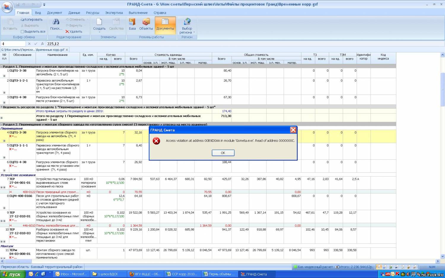 mtsn, честно говоря, напрягать стало... Если ошибка выдается в момент работы со сметой, то открыть ее уже не получается. Спасает только то, что у меня каждый час рабочие документы сохраняются на сервере - есть возможность восстановить. Ответа от техподдержки не дождалась. Обновление версии не помогло, ошибка выдается до сих пор.