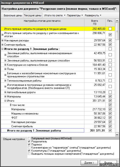 Добрый день. При экспорте сметы в Excel предлагается настроить вид итогов по разделам. Далее выводится окно где, собственно и предлагается отметить галочками нужные строки и не отмечать ненужные. Из всего этого списка мне необходимы только "сметная прибыль" и "накладные расходы" (не в развернутом виде), то есть итоги по видам работ я не отображаю. И в итогах по смете тоже для видов работ я снимаю галочки. Напрягает то, что по умолчанию они всегда стоят, и постоянно приходится их снимать. Это с учетом того что в смете в среднем двадцать разделов. Перерыл справку, но в разделах по шаблонам ничего нет подобного. Подскажите, пожалуйста, способ как сделать, так что бы по умолчанию галочки стояли только там где мне нужно.