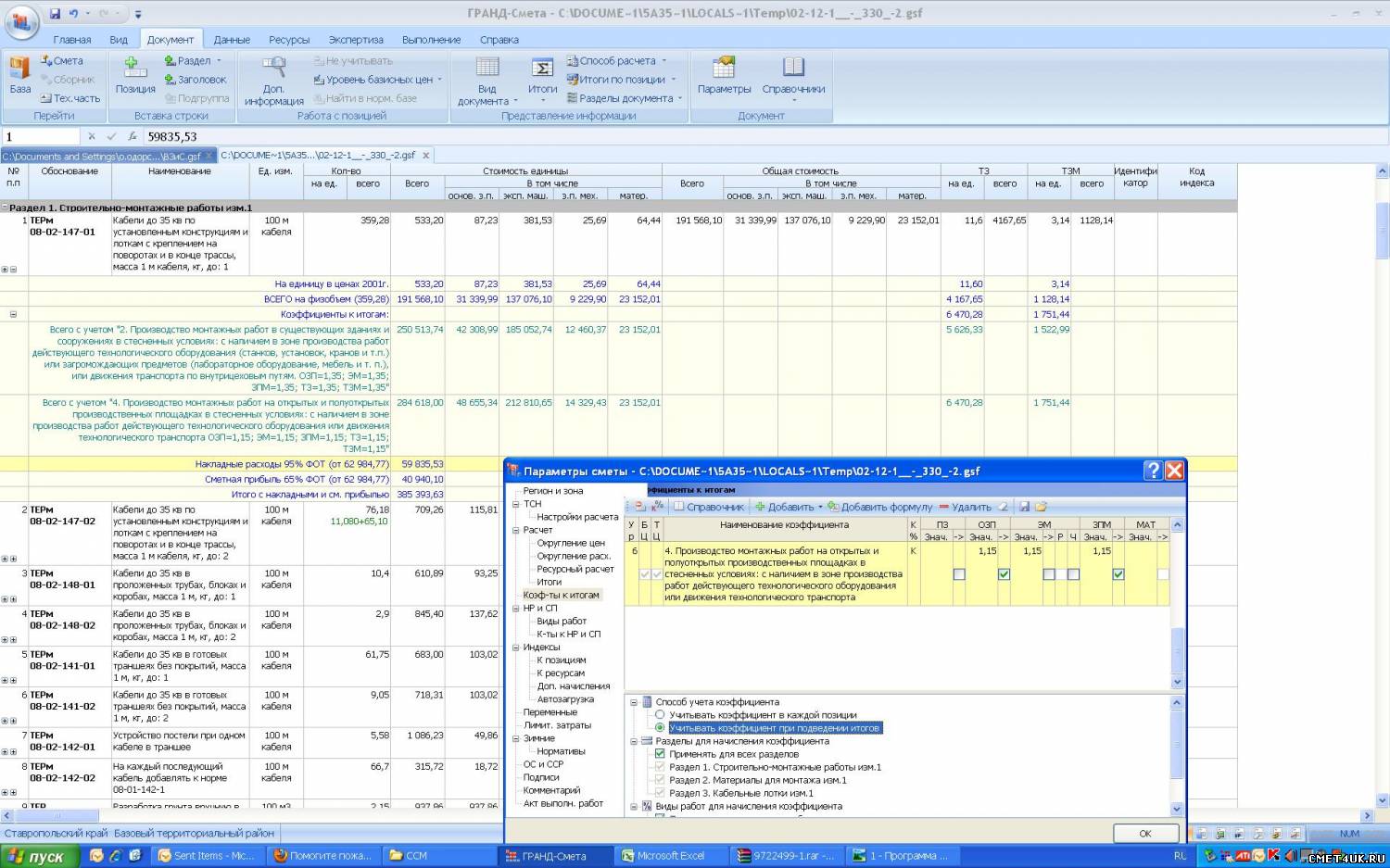 Здравствуйте! Опишу ситуацию как можно понятнее. Мне даны сметы в Excel, я набираю их в ГРАНД. Но при наборе некоторых расценок стоимость за единицу МАТ не сходится с Excel данными. При этом в расценке Excel не указаны ни коэффициенты, ни что-либо подобное. Подскажите, в чём может быть проблема. Спасибо.