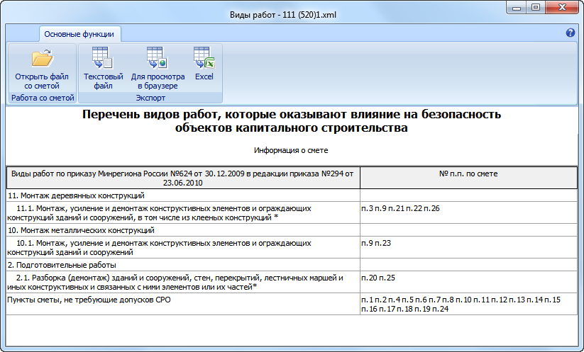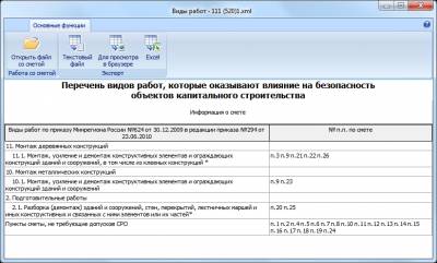 к слову про определение допусков от СРО. к 9 всероссийскому семинару была разработана автономная программа, позволяющая на основании сметы в формате xml сформирвоать список работ, на котороые нужны допуски.
