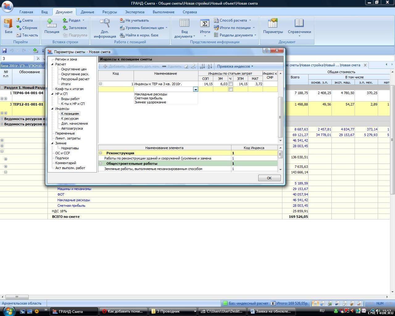 Iruska818, Вкладка "Параметры" , далее Индексы, в открывшемся окне самая нижняя строчка - "применять единый индекс в итогах после начисления лимит.затрат", ставите галочку, пишете обоснование(с учетом договорного коэф............), ставите свой коэф -0,93 и все.