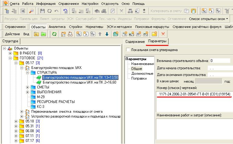 2. Куда вводить номера чертежей, что бы они отображались в экселе? Сама ввожу в Параметры сметы - Описание - Общие - Список чертежей. Так же не могу найти, куда вводить номер локальной сметы, что бы отображалось в экселе в нужном месте? Вмето номера пишет "Новая локальная смета", аналогично пишет и в объектном сметном расчете.