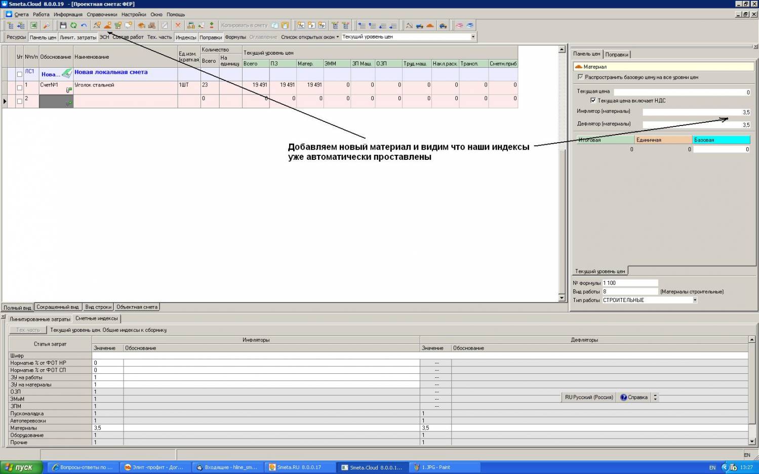 Индексы пересчета для материалов из прайс-листа выставляются в программе автоматически?