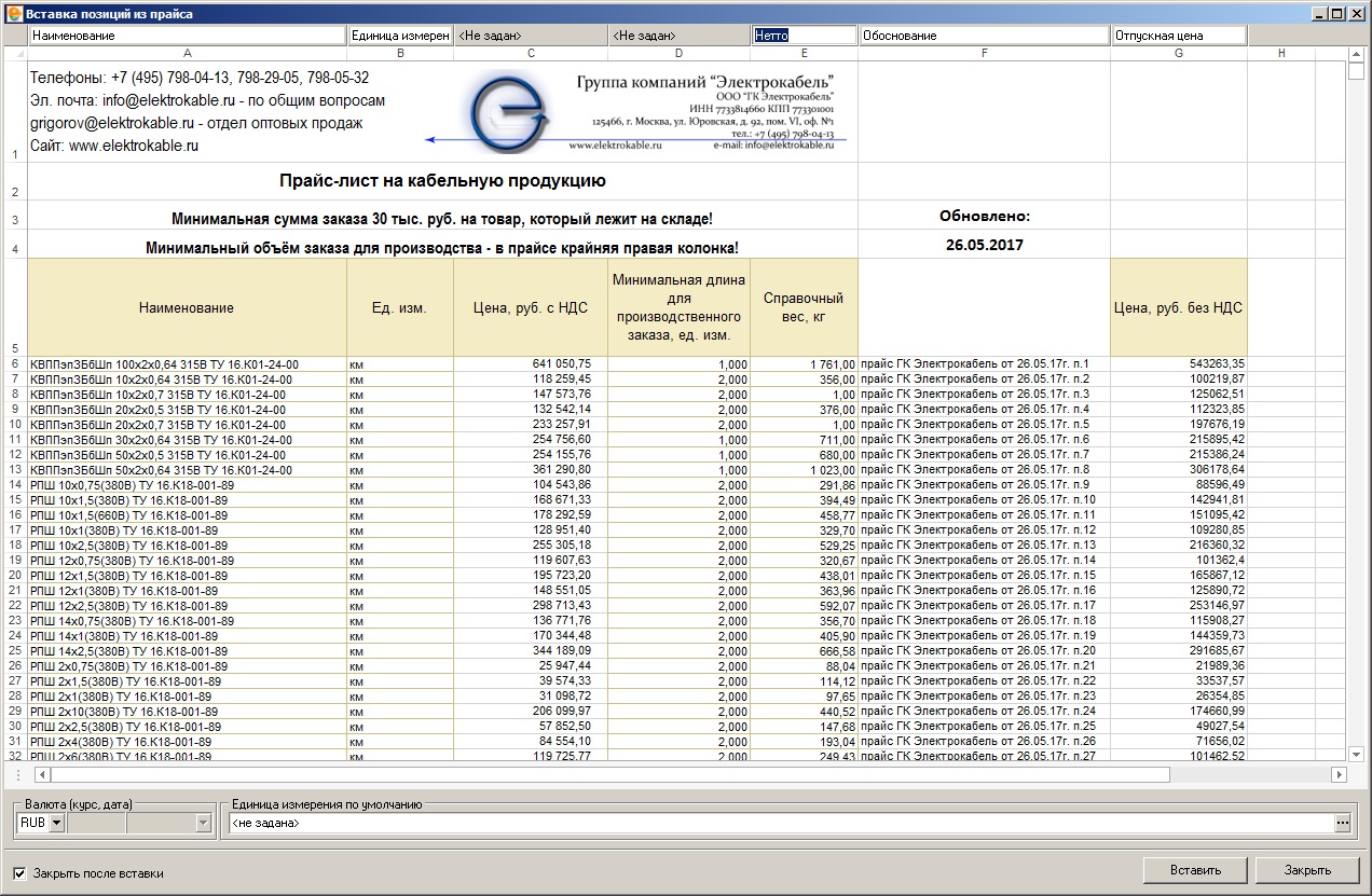 Интересно, а есть ли спрос на такие прайс-листы в формате программы? У меня заняло не так много времени на изготовление сборника из 1000 строк. Если организовать обмен ... Для начала выложу здесь, то что у меня получилось. https://yadi.sk/d/TXYaFVwk3Jeopa В сборнике материалов надо выбрать импорт->сборника(ов) и указать файл