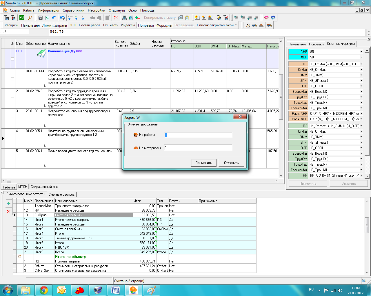 Блин у меня не хочет ЗУ проставляться подскажите пожалуйста где туплю??? Нажимаю в смете правую кнопку мыши, далее ДЕЙСТВИЕ, далее ЗАДАТЬ ЗУ ..... Пишу там свой коэффициент ..... но ничего не происходит. ЗУ как было 1,5 % так и осталось........Вот скрин: