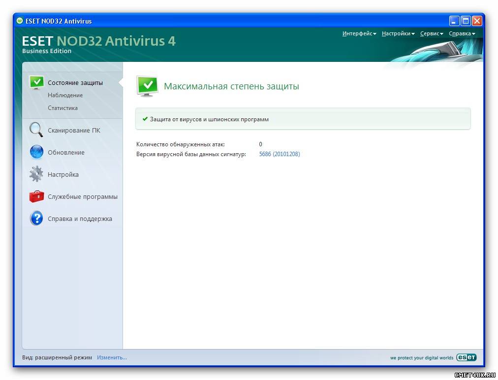polinomus, все, что написано по Вашей ссылке я прочитал до того, как задать вопрос здесь. И Интересует меня в данном случае мнение пользователей. Но раз уж здесь появился представитель разработчика, вопрос будет и к Вам. На сайте написано: "Обращаем ваше внимание, что в случае установленной антивирусной программы NOD32 не гарантируется стабильная работа ПК "Smeta.RU". Чтобы исключить подобные проблемы, предлагаем добавить firebird в список исключений NOD32" и далее "Зайти в Nod32 Control Center и выбрать узел IMON". Что делать, если у меня нет Nod32 Control Center? Вот скриншот моего NOD32.
