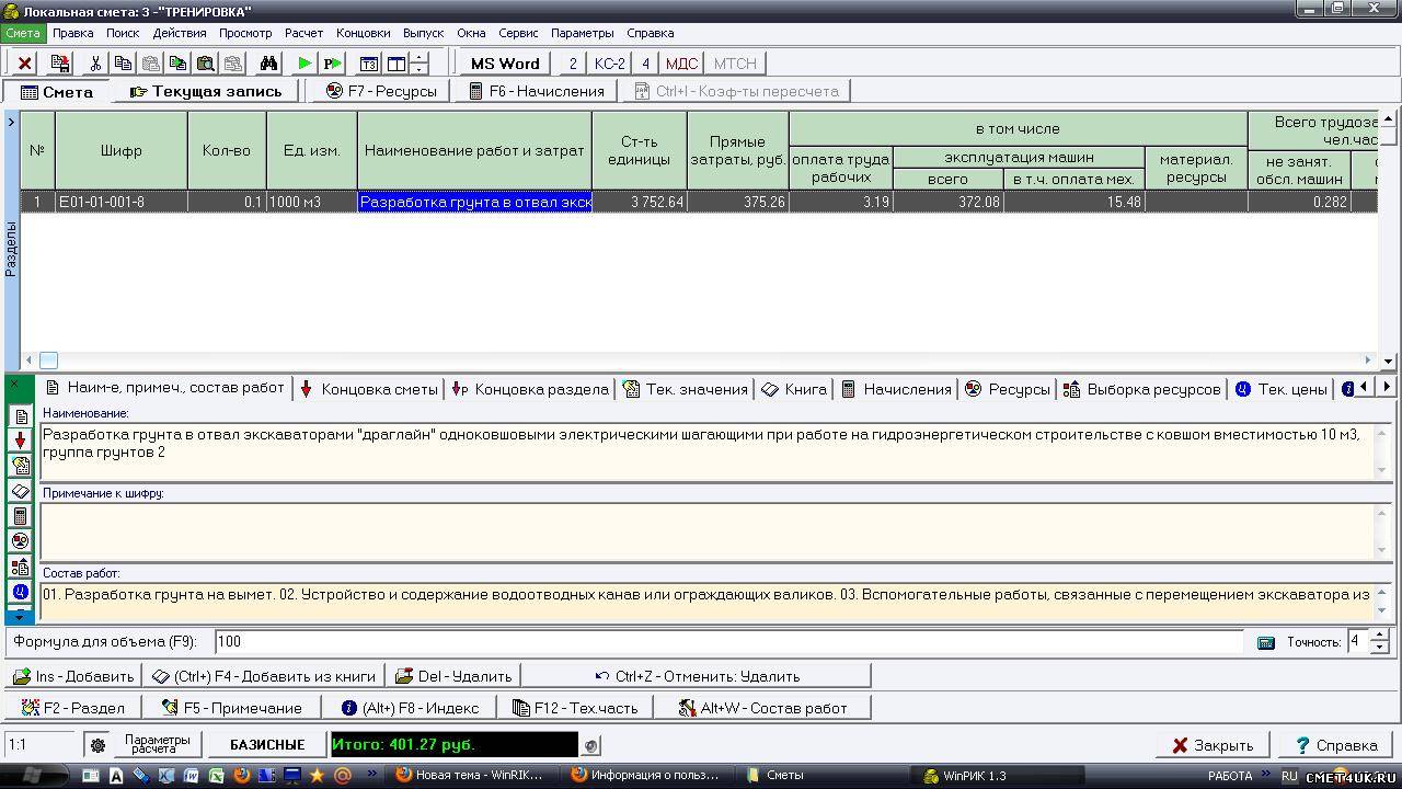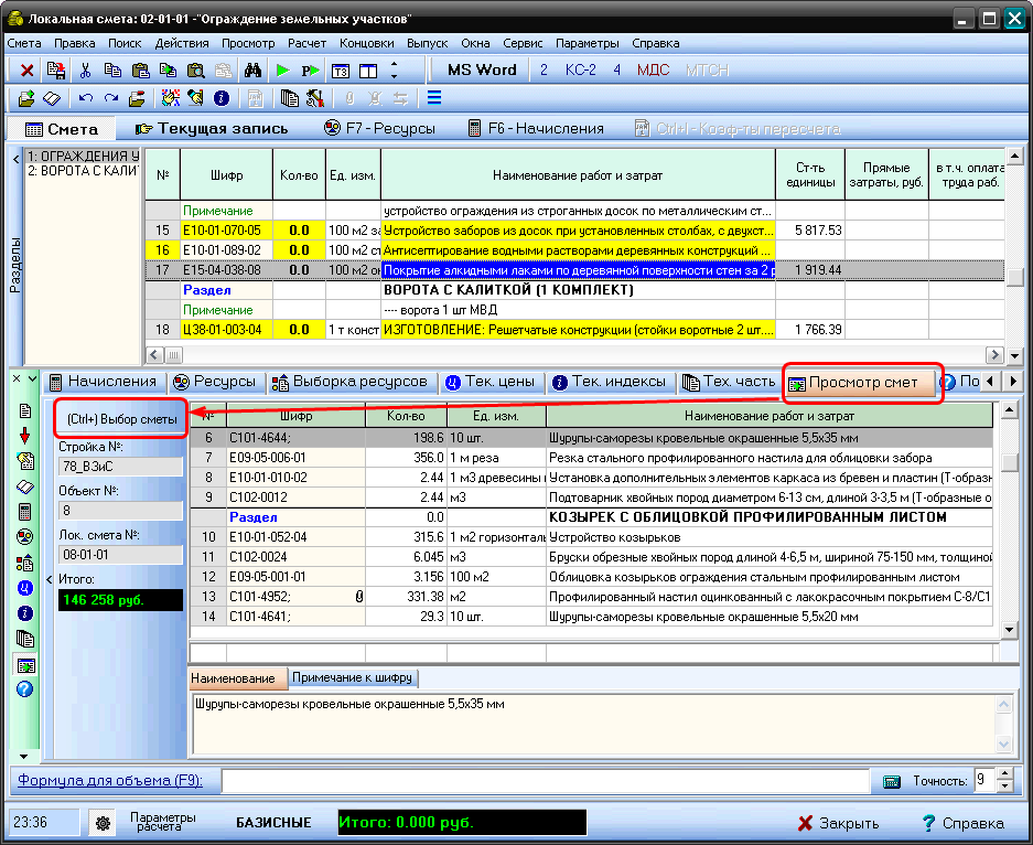 а дальше таскайте мышью или выделяем строку сметы в "Просмотре смет" и жмём <Enter>