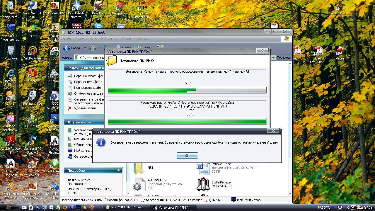 И замените имя папки "Установочные файлы РИК с сайта РЦЦС" на что-нибудь вроде "RikInstall" (латиницей, коротко и без пробелов) и повторите установку.