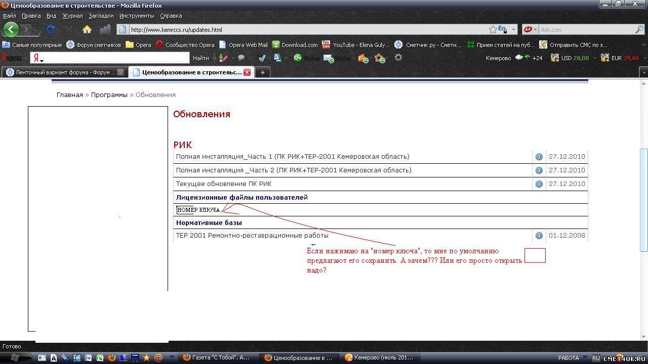 Года два назад устанавливала самостоятельно обновление РИКа. С диска. И всё забыла. К тому же сейчас не с диска надо установить, а с сайта РЦЦС. То есть сначала скачать файлы инсталляции, а потом всё остальное. Куда их скачивать нужно? В любое место? И как, по очереди (они в двух частях) И зачем, при нажатии на номер моего ключа мне предлагается его сохранить??? Помню. когда скачивала с диска, то в папку с ключом нужно было зайти только для того, чтобы скоприровать из неё файл user.