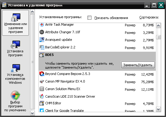 av_00, ну, кто же не знает про такие снесаторы. Знаем конечно, проходили. Так всё и дело то как раз в том, что в моем снесаторе нет никакой BDE, то есть, сносить как-бы и нЕчего.