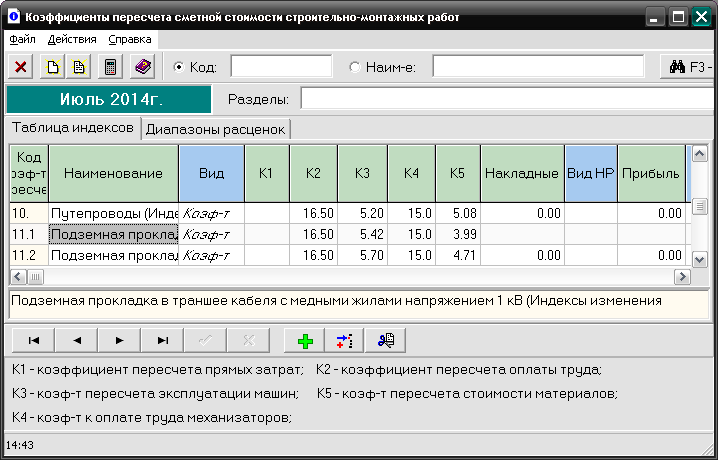 Можно в самом верху концовки (в редакторе концовок) вставить служебные строки с погашенными лампочками для индексов пересчета по статьям затрат и привязать их к строкам пересчета. В этом случае вводить индексы придётся один раз в три ячейки, все остальные (ОЗП, МШ, ЗПМ, МТ, НР, СП) пересчитаются автоматом