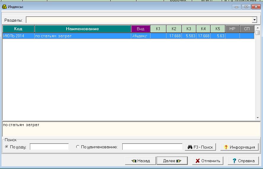 В локальной смете – без проблем можно создавать индексы по статьям затрат в отдельный файл, а потом только выбирай да вставляй первой строкой в смету...