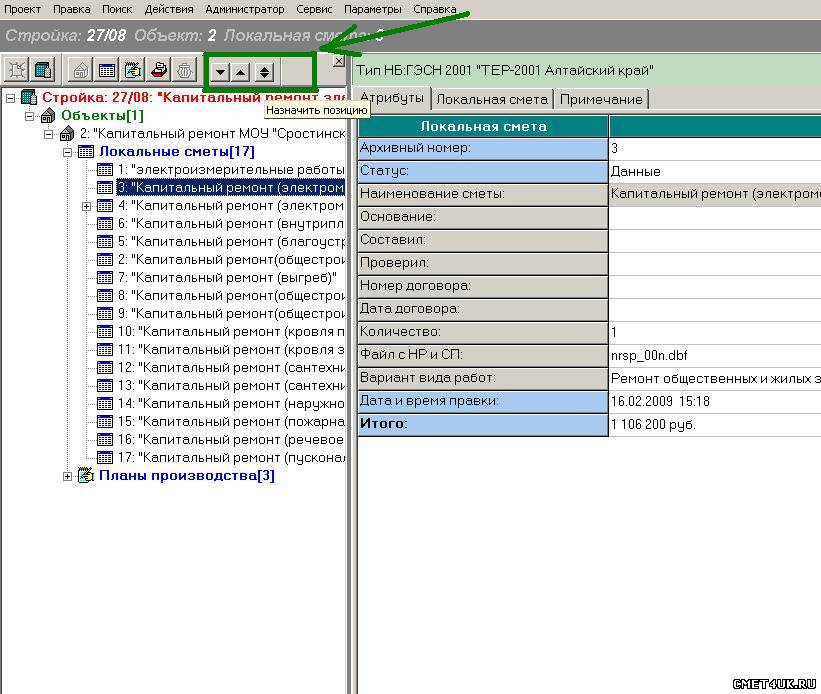 Каждая стройка имеет свой "УНИКАЛЬНЫЙ архивный номер", для автоматической вставки локальной сметы в нужную стройку и объект номера строек и объектов должны совпадать. Тогда смета (та, что на внешнем носителе) будет корректно добавлена (выбрать режим "Вставить выбранную позицию") Если при вставке отвечаем «заменить...», и смета записывается в стройку с другим номером, не страшно, можно по правой кнопке мыши скопировать смету (объект) и вставить в нужную стройку. Для правильного расположения в архиве есть возможность упорядочить стройки, объекты, локальные сметы "Переместить вниз", "Переместить вверх", "Назначить позицию" см. файл