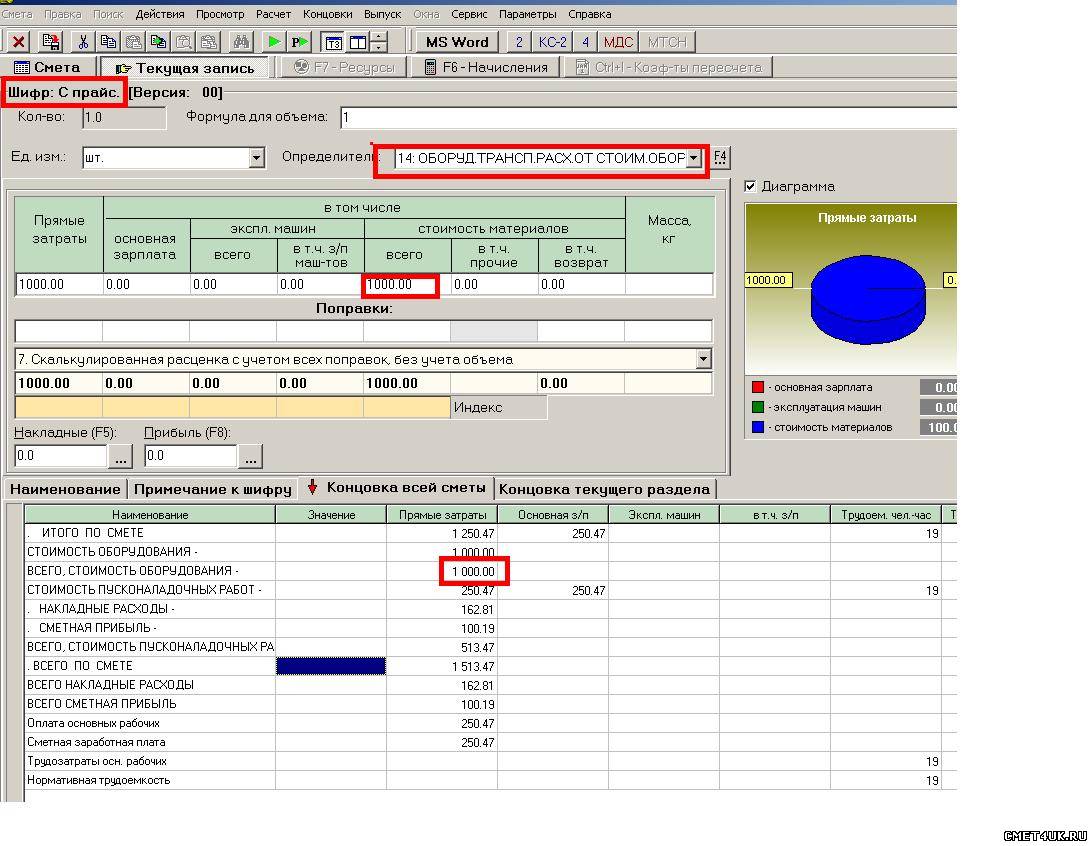 Нет, на калькуляторе сумму оборудования вычислять не надо. Шифр ставим «С» или «П» в «Текущей записи» определитель 14 или 15
