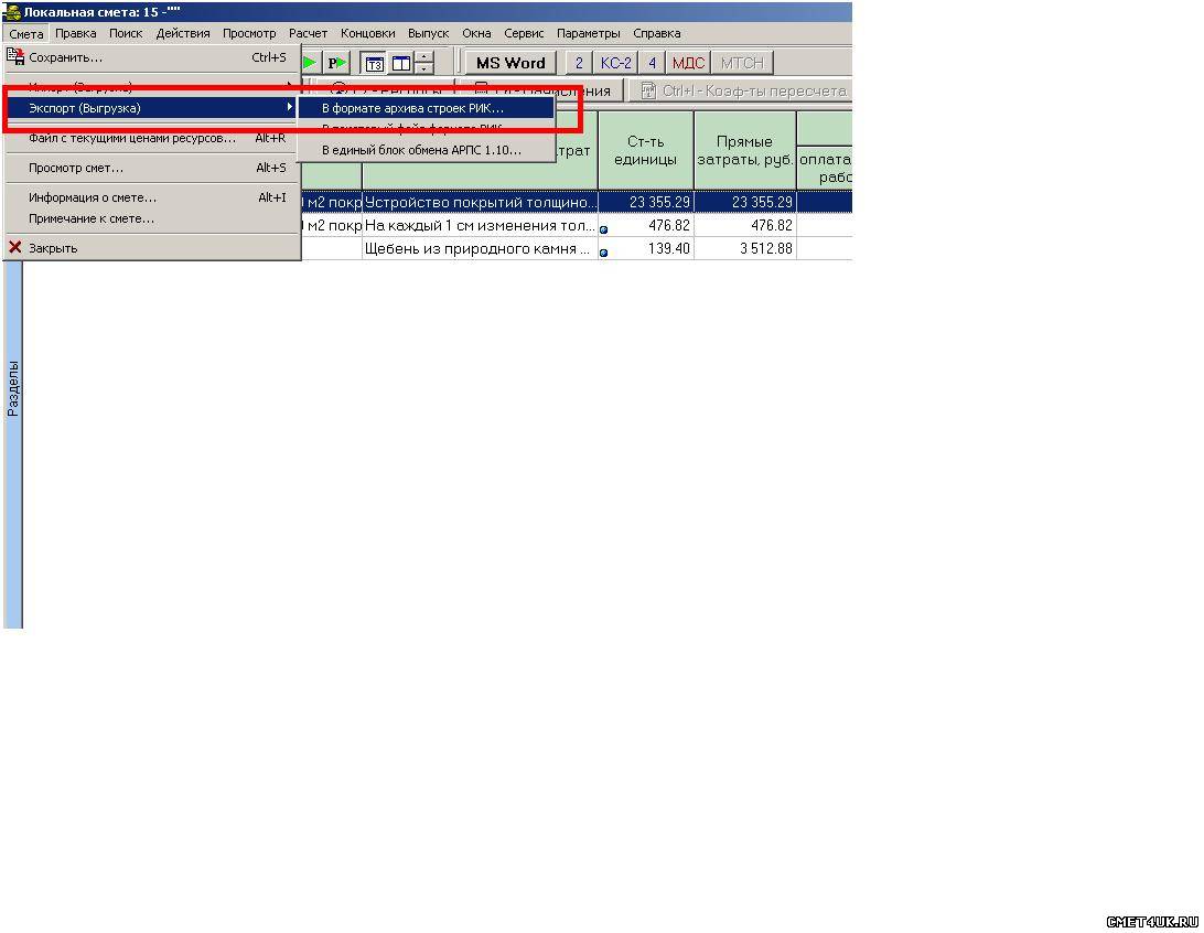 У меня в РИК экспорт на выбор: архив строек, текст.РИК и АРПС. Я привык на флешку в текстовом формате сохранять.