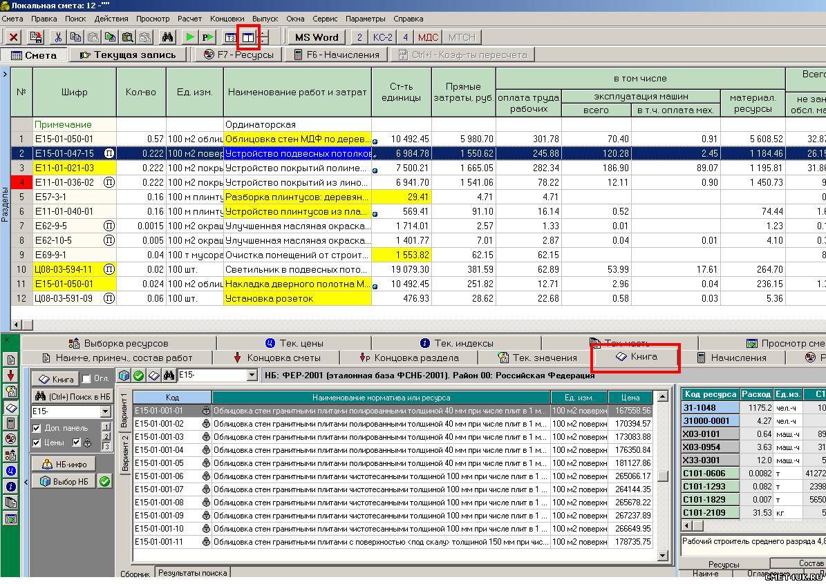 Мне больше нравится перекидывать расценки по закладке "Книга" см. влож. Можно добавлять расценки, перетаскивая в смету, удерживая левую клавишу мыши, или двойным щелчком левой клавиши мыши, а так же "Enter" Можно менять расположение окна с горизонтального на вертикальное (видно больше позиций в смете) см. влож.