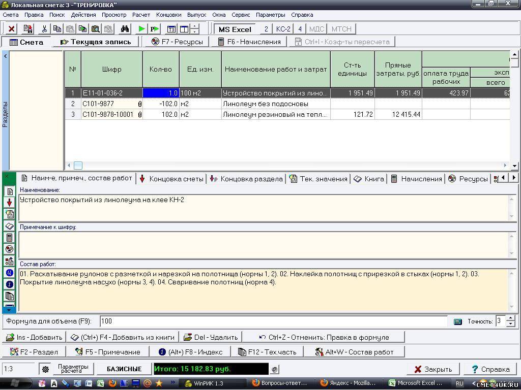 Добавлено (04.08.2010, 13:18) --------------------------------------------- У меня тогда все ресурсы удаляются.В "Е-11-01-036-2" меняю линелеум на С101-3634 - "удален" и в Е11-01-027-3 плитку на керамический гранит С101-3445 тоже получается "удален"