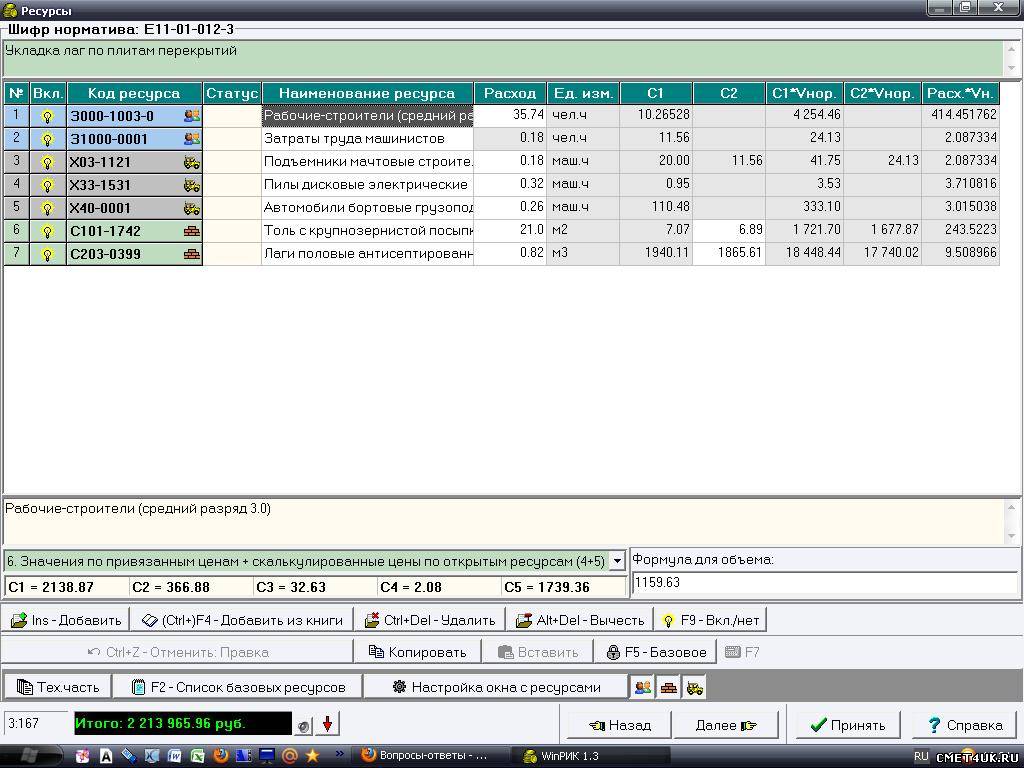 anoh_anna, а вышло у Вас это так потому, сто Вы зашли в ресурсы расценки Е11-01-012-3, выделили все ресурсы и выбрали правой кнопкой мыши :"Перенести в смету(с удалением)" А этого делать не надо. Зайдите вновь в ресурсы, выделите их все и нажмите F5 (восстановить базовые значения). И так в каждой расценке по п.п.1,9,17,24 и т.д.