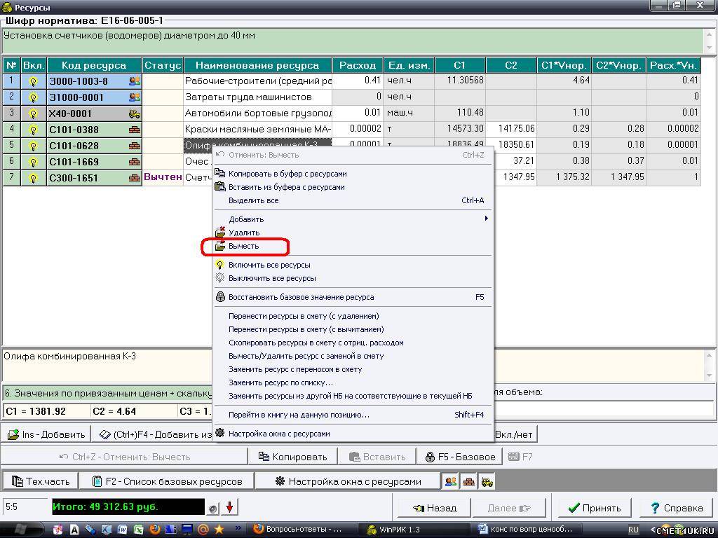 СМЕТАНКА53, При команде "исключить" напротив ресурса появляется запись "вычесть" или "удалить" в зависимости от статуса этого ресурса. Т.е., сразу будет видно, вычкл РИК или удалил.