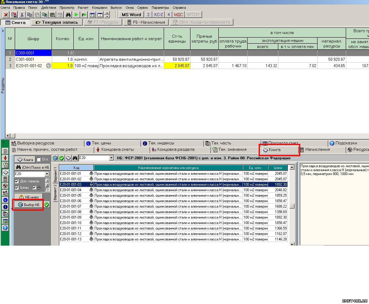 Так в том то и дело, что мне нужно с наименованием, ценой и т.д. То есть через пробел - не пойдет. Попробую пояснить: Для того, чтобы добавить в смету ресурс или расценку из старой редакции базы 2001г. нужно проделать путь: Правка/Добавить ресурс или расценку из другой НБ/Выбрать ТЕР2001(старая ред.)/Выбрать зону/выбрать сборник (я выбрала С300) и...только затем выбрать по коду нужный ресурс. Я выбрала С300-0001 (Агрегаты вентиляционные...). Да, в смете шифр будет красным, но зато будет и наименование и цена ресурса (как в прикрепленном файле). А мой вопрос заключался в том, нет ли пути короче