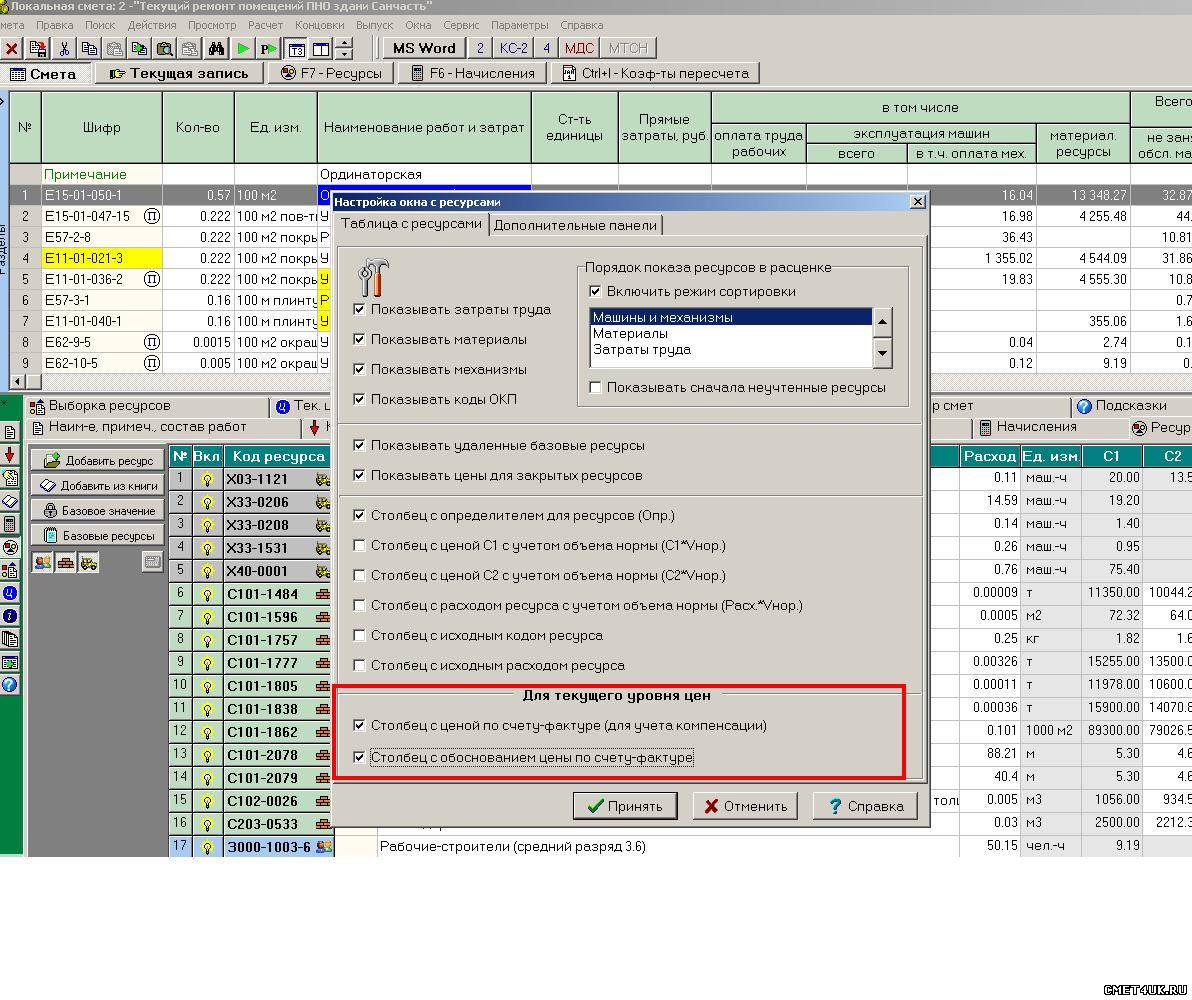 У меня вопрос. При переходе из локальной сметы в РСР есть - "вид учета ресурсов", в том числе - "переносить обоснование счета-фактуры из локальной сметы". Что это за функция? Где в локальной смете можно поставить обоснование счета-фактуры, которое затем можно в РСР перенести? Заранее спасибо!