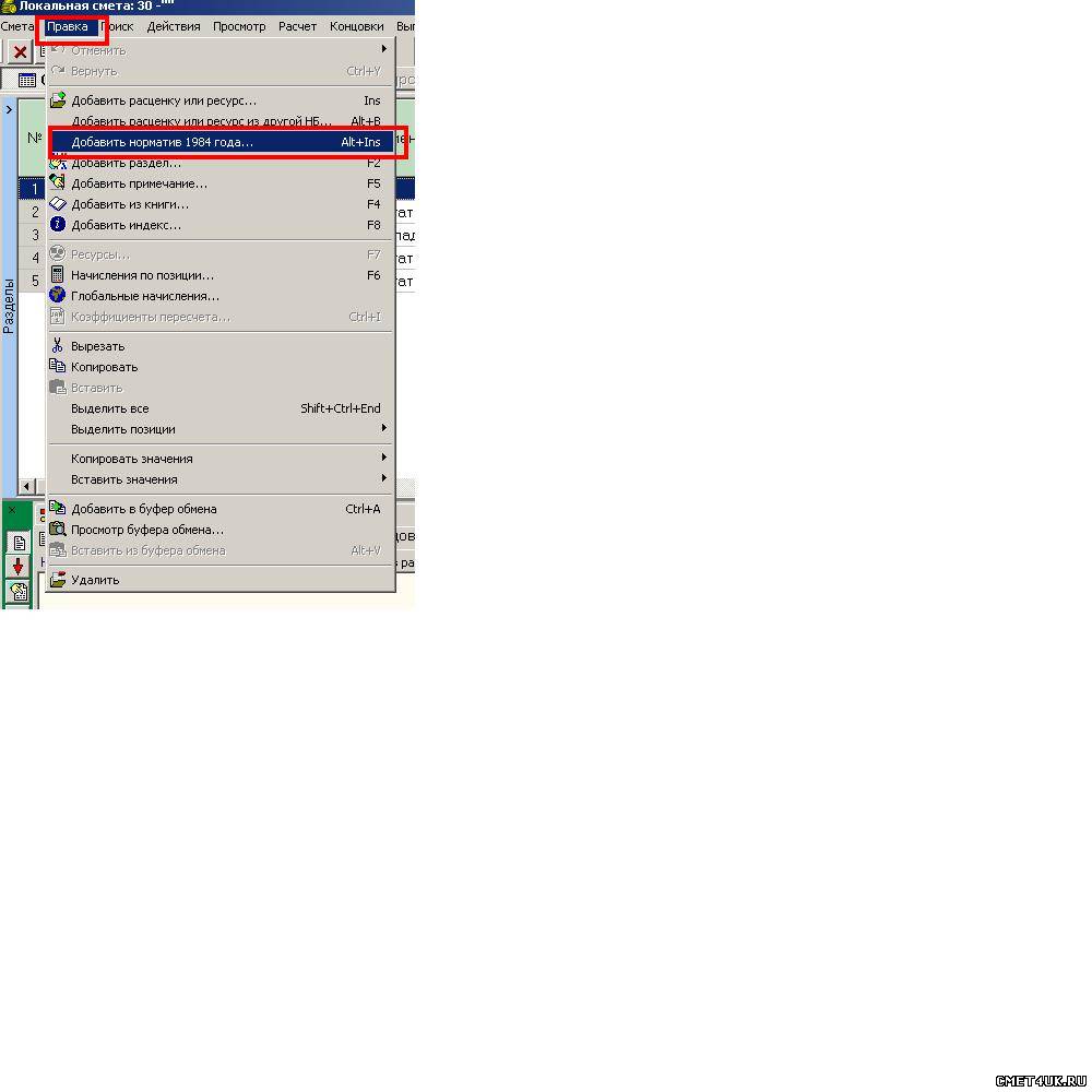 Но я еще один небольшой вопрос: Для того, чтобы в смету, составленную в в новой редакции СНБ-2001 вставить ресурс из старой редакции СНБ-2001, нужно пройти долгий путь, с заходом в книгу. А вставить ресурс из 84 года очень просто, зная его код. Просто нажал на Alt+Ins и готово!!! Может и есть (просто я не вижу) аналогичная команда и для вставки ресурса из СНБ старой редакции по его коду?
