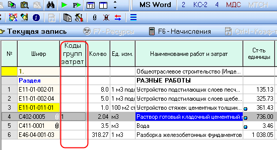 В окне "Локальная смета" есть окно с текущей записью. Хорошая штука. Жаль только, что в нем не отображается и Группа затрат. Очень бы пригодилось для проверки собственной сметы. Сейчас же, чтобы проверить правильно ли отнесены позиции сметы к той или иной группе, приходится каждый раз сдвигать окно локальной сметы вправо. Ну очень неудобно.