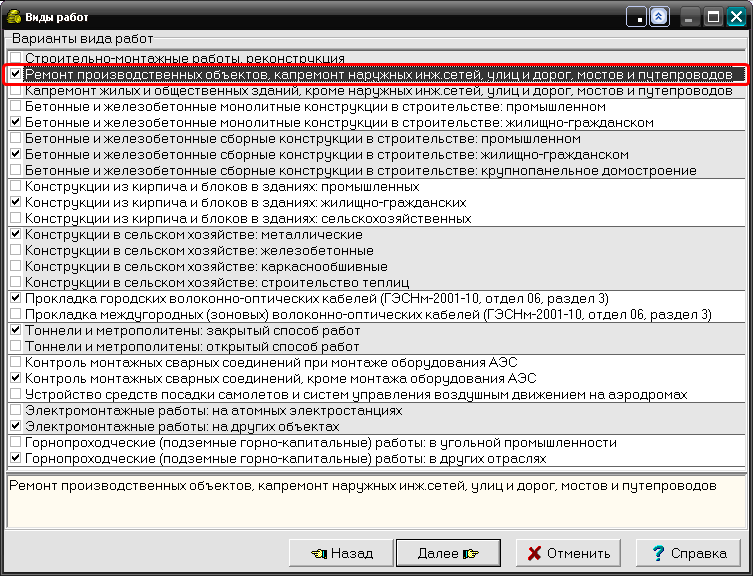Насколько мне помнится, такой вопрос уже несколько раз поднимался на семинарах по программе, и каждый раз упирался в то что именно в такой редакции варианты вида работ перечислены в нормативной документации.