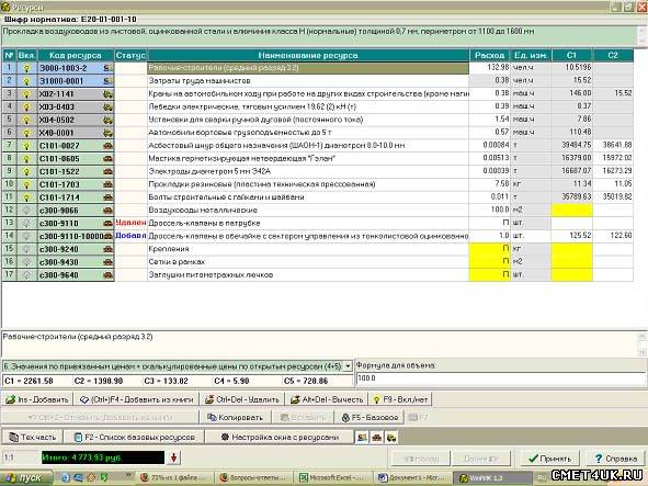 Марика, Ну вот смотрите. Берем. например ТЕР20-01-001-10. Удаляю один из ресурсов с выключенной лампочкой, так как он без стоимости и кол-во по проекту (дросселль-клапан). Затем добавляю. Все получается правильно. У Вас так?
