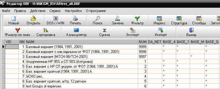 С:\RIK\SM_R\VAR – в этой папке хранятся все концовки. В файле res_all.dbf хранятся наименования Ваших ресурсных концовок Выглядит это примерно так: