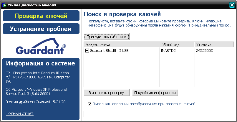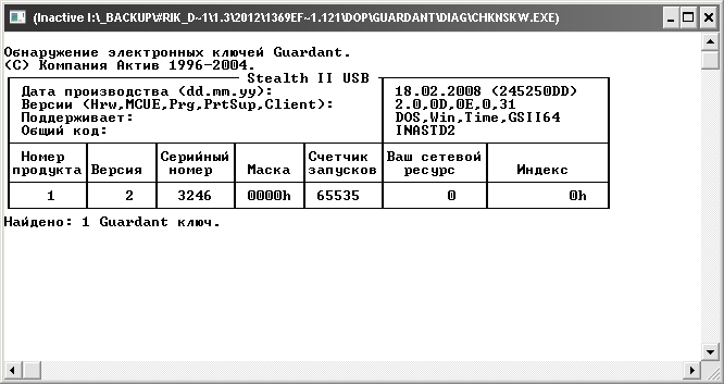 Успехов... Порядок я бы принял такой (это упрощенный): 1. Попить чай с утра, заменить файл res_all.dbf в папке VAR на одноименный файл из архива (сообщение #1347) 2. Вставить ключ и посмотреть в диспетчере устройств, как он определён системой. – в случае отсутствия запустить диагностику (сообщение #1354) 3. Попробовать запустить РИК, если на экране ничего не возникло, посмотреть в Диспетчере процессов наличие в памяти процесса WINRIK.EXE. Если он там торчит, а на экране не появляется, значит РИК не видит ключ и надо переставить дрова ключа. 4. Выдергиваем ключ и запускаем из папки ...\DOP\Guardant\INSTDRV.EXE (это версия 4.8.5, есть папки с другими версиями) установщик дров. 5. Вставляем ключ, заглядываем в диспетчер устройств, запускаем РИК. 6. Если проблемы остались, ставим заново BDE (...DOP\BDE). 7. Должно заработать.