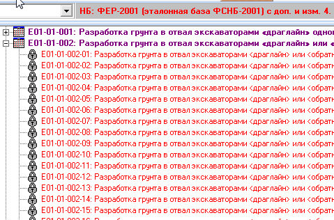 Замок на расценке означает, что Вы открыли сборник единичных расценок, имеющий расценки с ценовыми показателями.