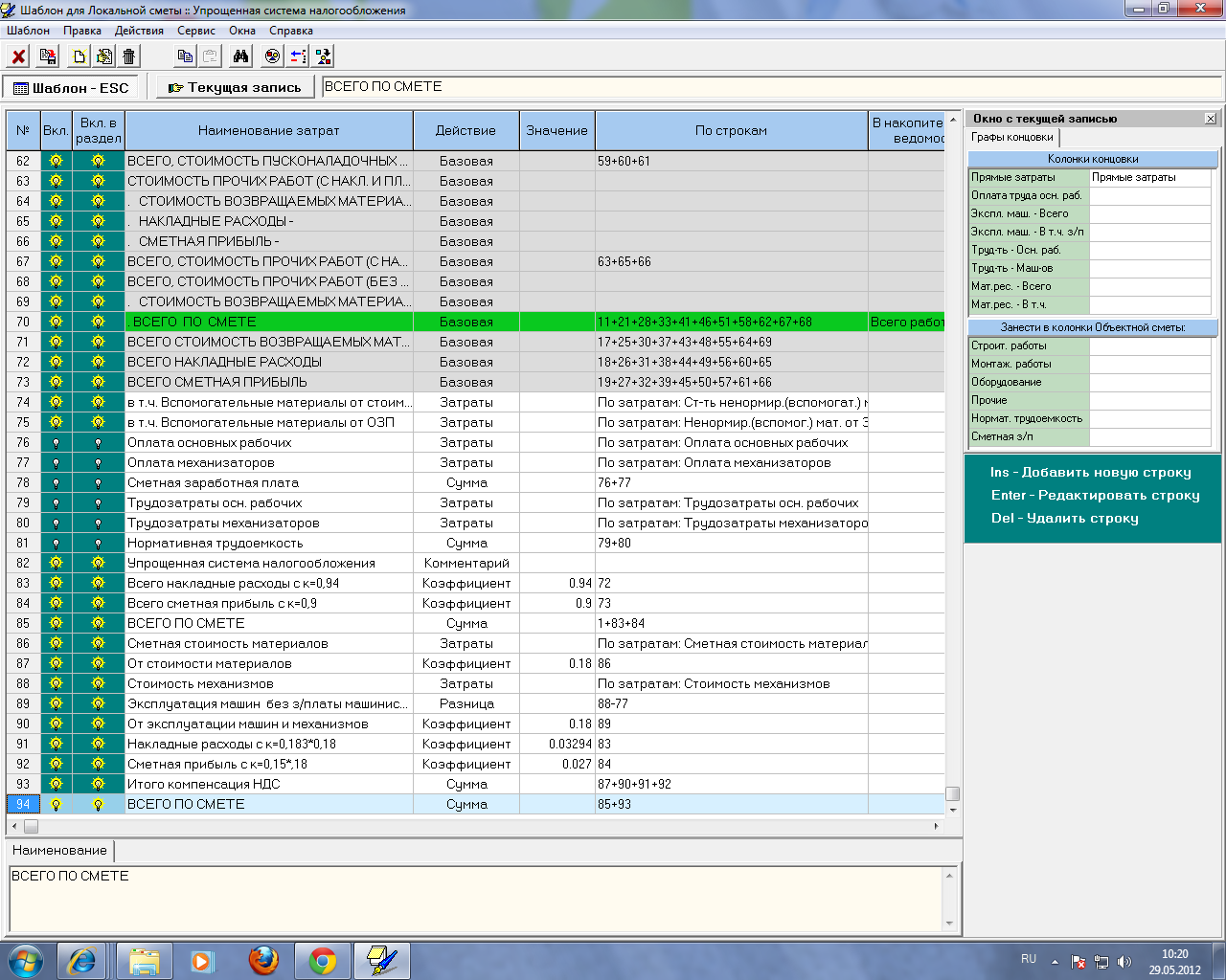 tema3, Нормальная концовка. Можно еще вписать лимитированные затраты (при ненадобности - отключить), и последний штрих - щелчок правой кнопкой мыши по п. 94 и "сделать результирующей строкой" (или как-то так).