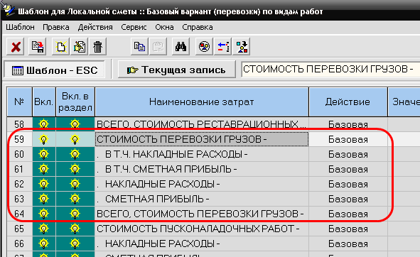 В Редакторе концовок сделайте копию (ПКМ->Создать) с концовки "Базовый вариант (ФСНБ, ТСНБ, ОСНБ) по видам работ". В ней есть блок с перевозками: