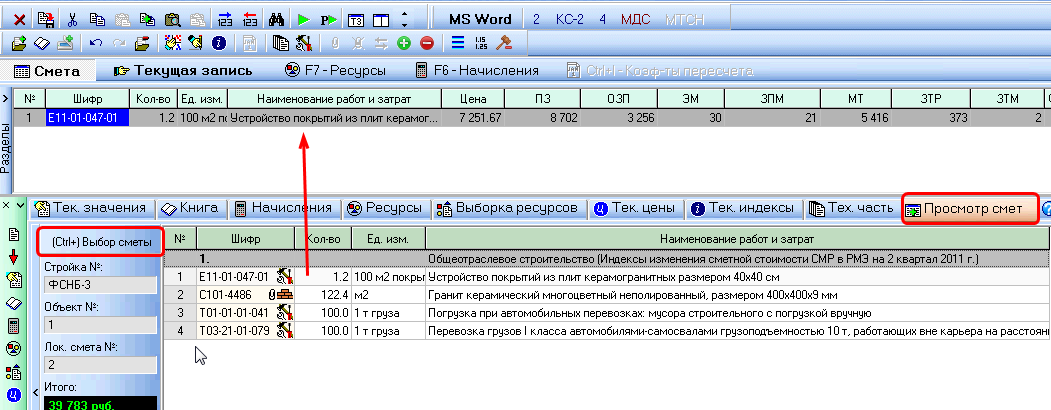 2. Жмёте на вкладке кнопку (слева-вверзу) – "(Ctrl+) Выбор сметы"