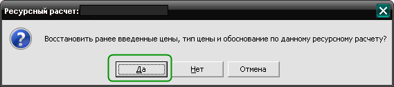 Когда входите в РСР, сначала возникает окно с вопросом о восстановлении ранее введенных цен.