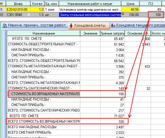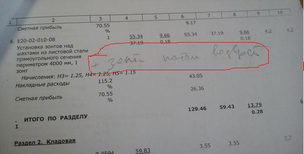 есть вот такая расценка Е20-02-010-08 материал (зонт) дает нам заказчик. то есть нужно сделать возврат материалов. Смета была на проверке и там было написано (смотреть на фото)