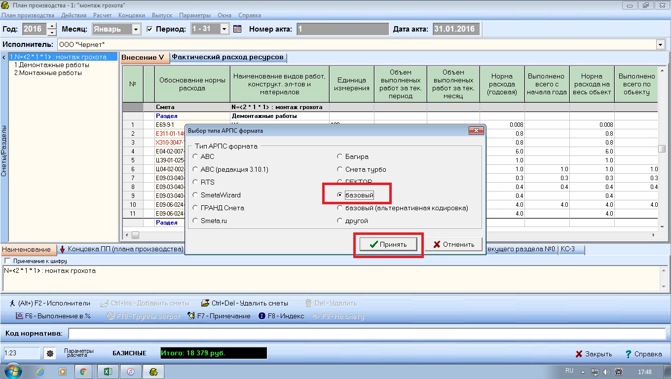 Что делаю я: 1. Открываю программу, захожу в дерево - стройка, объект, локальные сметы, выбираю смету, выбираю план производства работ 2. Нажимаю F3 Выпуск. Открывается мой "план производства, текущий акт" 3. Все объемы заполнены, все вроде сохранено, даже для накопительной ведомости все сохранила. Выбираю вкладку План производства - Выгрузить в Единный блок обмена АРПС1.10 - текущий акт 4. Выбираю директорию, куда сохранить, где-то на своей папке компа. Жму сохранить, всплывает окно "Формат АРПС, выбираю "точку" - базовый и жму сохранить. Файл с расширением ARP появляется в необходимой директории. 5. Выходит белое окно, с кучей информации по расценкам, что-то учтенно что-то нет. Жму сохранить, и сохраню этот "файл сообщений" туда же, где и сохранила пред.файл. (это информативный файл, я так понимаю и никакой системной нагрузки, что без него что-то не откроется, не несет?)